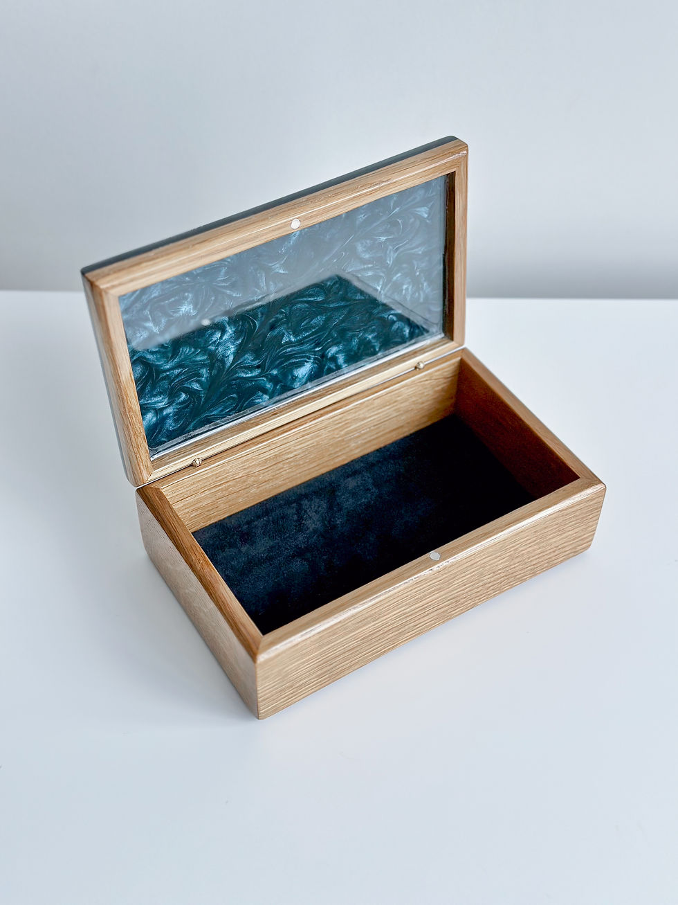 Скринька з дуба з камінчиками, блакитна з перламутром